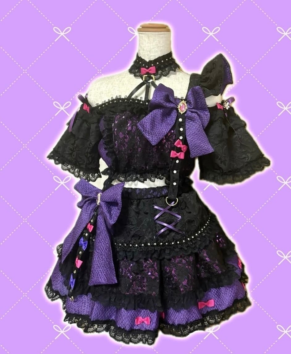 黒と紫、ピンクの組み合わせがかわいい小悪魔なアイドル衣装です。